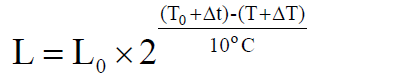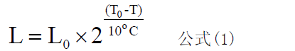 根據(jù)阿列紐斯方程結(jié)論可知,電解電容使用壽命計(jì)算公式如下: