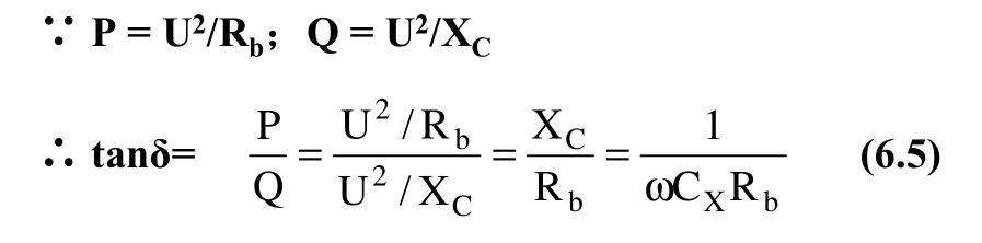 P與電容器消耗的無功功率Q 圖6.3 介質(zhì)損耗角