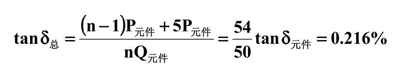 即正常情況下總體介質(zhì)損耗因數(shù)與單元件的介質(zhì)損耗因數(shù)相等。現(xiàn)假定元件總數(shù)為50個(gè), 正常單個(gè)元件的tanδ為0.2%。