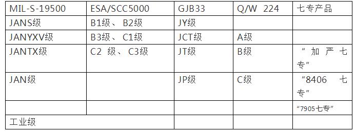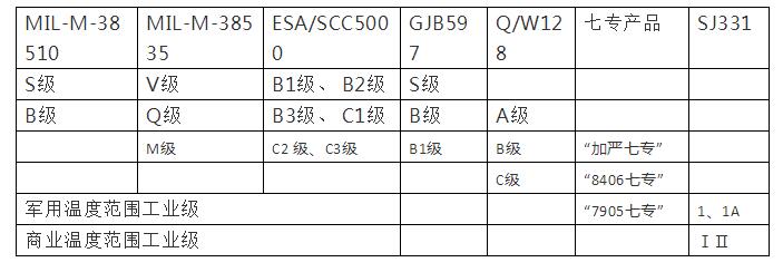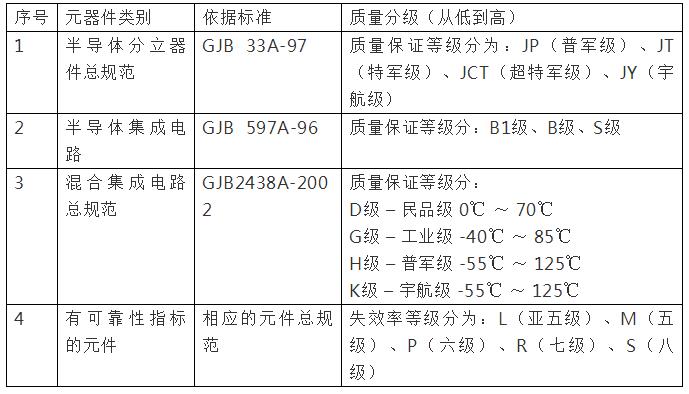 國外軍用電子元器件質量等級與國內對應梳理