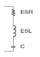 圖中ESR是電容的串聯(lián)等效電阻,ESL是電容的串聯(lián)等效電感,C才是真正的理想電容。ESR和ESL是由電容的制造工藝和材料決定的,沒法消除。那這兩個東西對電路有什么影響。ESR影響電源的紋波,ESL影響電容的濾波頻率特性。