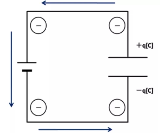 <電容器是停車場>電容器能夠儲蓄電荷。將電路比作成道路的話,電容器就好比停車場。電路正端和負(fù)端必定儲蓄著相同的電荷數(shù)。
